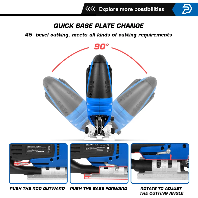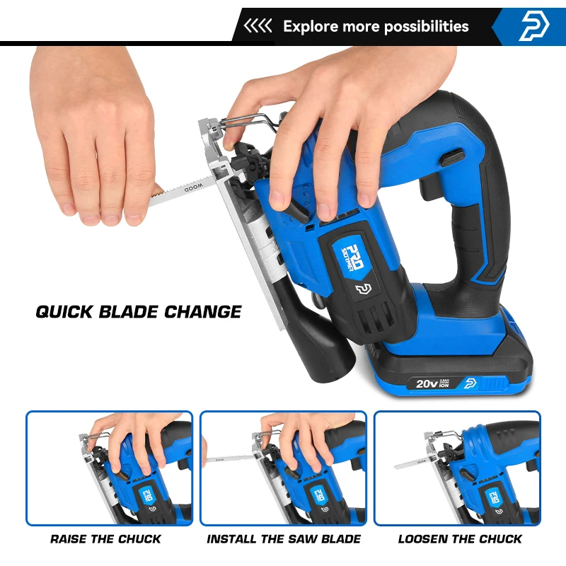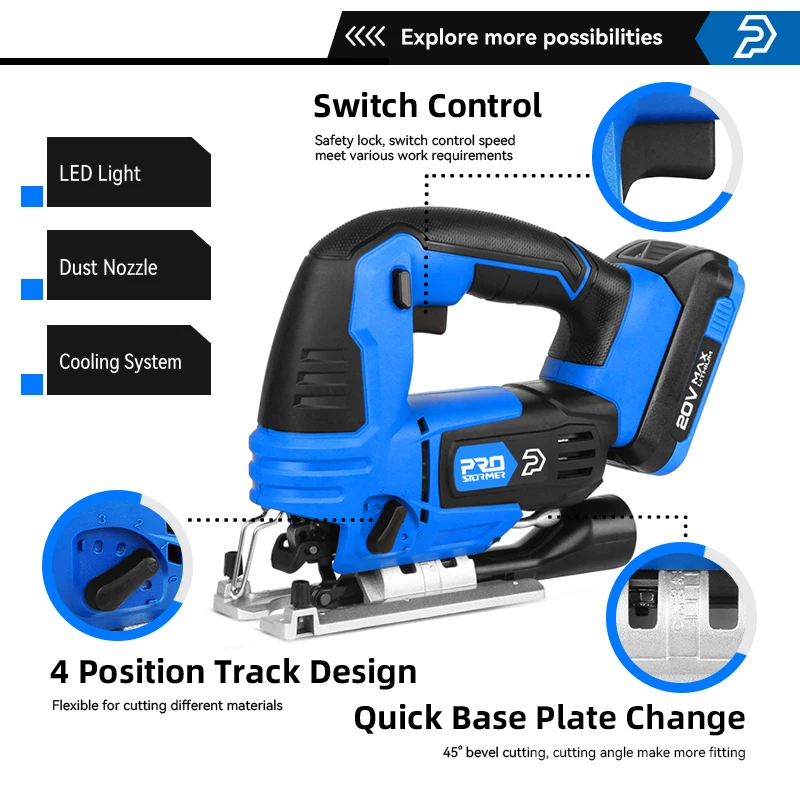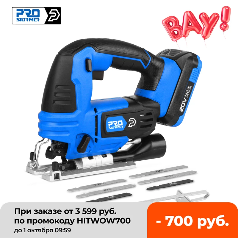 Top Product Jig Saw 20V Cordless Jigsaw Quick Blade Change Electric Saw LED Light Guide With 6 Pcs Blades Woodworking Power By PROSTORMER